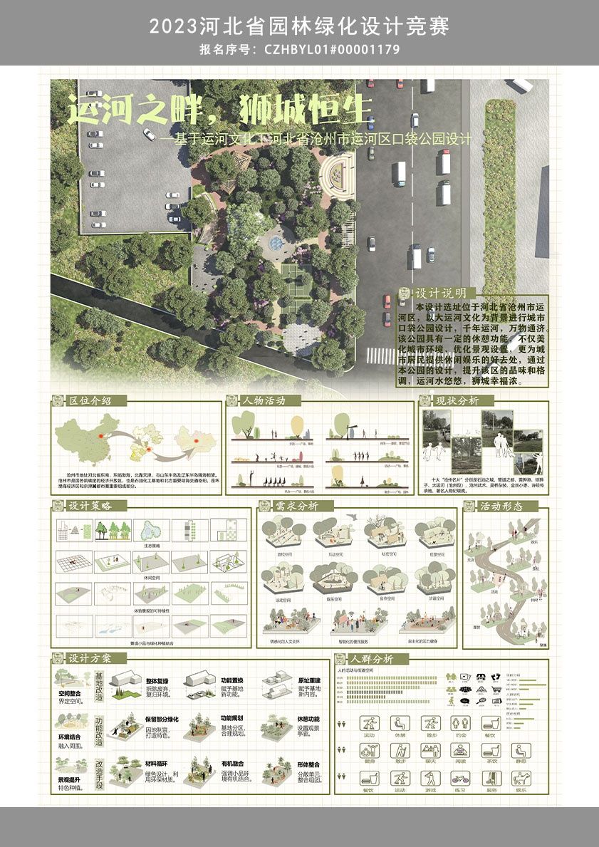 本设计选址位于河北省沧州市运河区,以大运河文化为背景进行城市口袋公园设计,千年运河,万物通济。该公园具有一定的休憩功能,不仅美化城市环境,优化景观设置,更为城市居民提供休闲娱乐的好去处, ...
