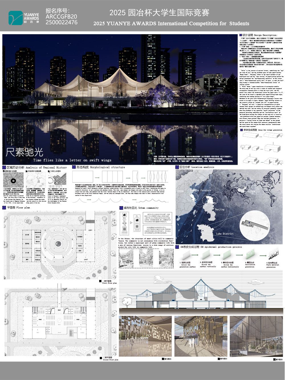 设计以“尺素”(书信)载情、“驰光”(速度)雕刻光阴为概念,将金陵剪纸“方寸载情”转化为站台空间“三维诗笺”,打造传递文脉的“立体信札”。顶盖主体以 层叠错动的长方形铝板构成基础网格,模块尺寸呼应传统 ...