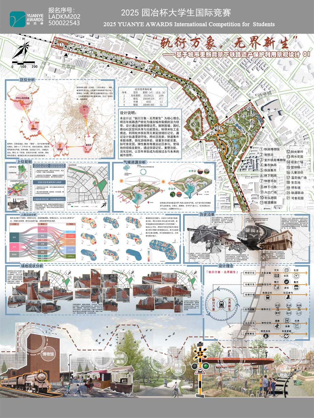 本设计以“轨衍万象·无界新生”为核心理念,将百年铁路遗产转化为缝合城市裂痕的活力纽带。设计通过破除物理边界,拆除围墙、围栏,推动社区空间共享与功能混合,转译米轨工业痕迹,利用枕木铁轨等元素延续场所记忆 ...