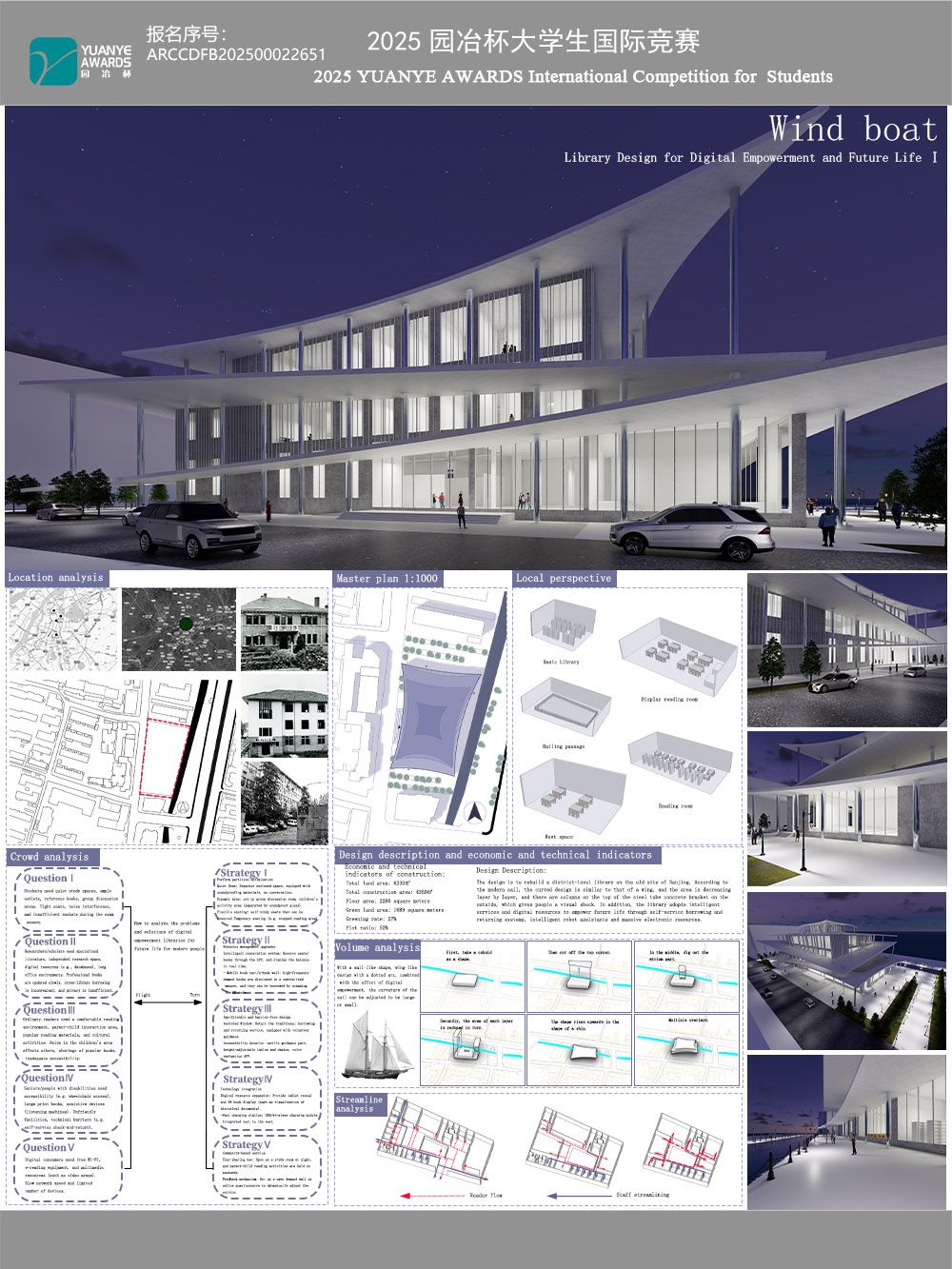 该设计在南京市旧址改建区级图书馆,。根据现代帆采用类似机翼的弧形设计,面积每一层逐层递减,外面有钢管混凝土支架片顶的柱子,片顶给人一种视觉震撼。并且图书馆内采用智慧化服务和数字资源普惠,通过自助借还系 ...