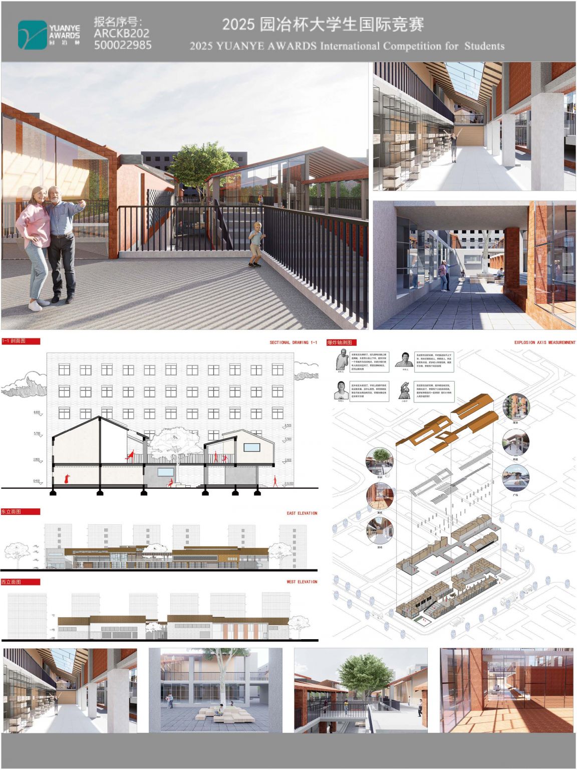 本项目位于山东济南市中区的老旧小区,针对老旧社区活力不足的问题,聚焦服务老年人与孩童,打造社区活力核心。设计以“轴庭双场·三线汇庭”为核心理念组织空间: 三线汇庭:三条功能主轴(长者康养轴、童趣探索 ...