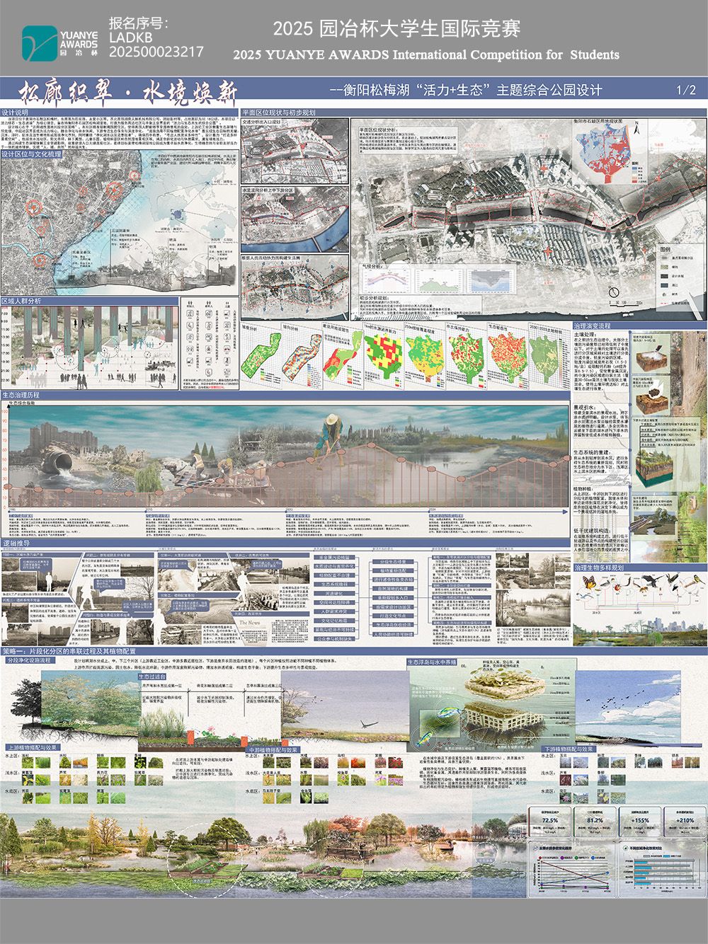 作品简介:本设计聚焦衡阳松梅湖,以“活力 + 生态”为主题,探索城市公园可持续发展路径。 深入梳理场地区位与文化脉络,分析人群需求及生态本底,针对场地现存问题,提出分段净化、空间织补、海绵城市及生态经济循 ...
