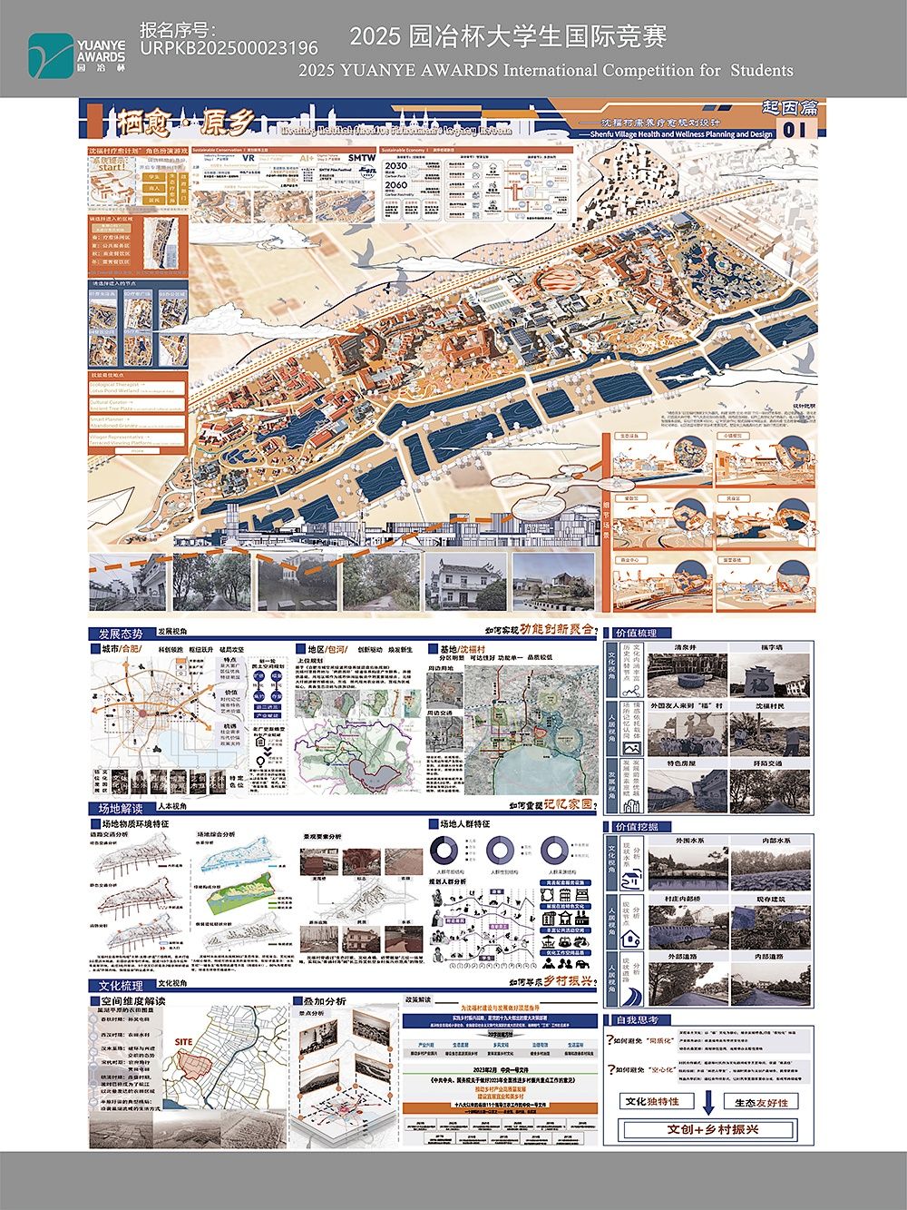 "栖愈原乡"以沈福村渔耕文化为基因,构建"自然-文化-社群"三位一体的疗愈系统。通过修复水系、活化老宅,打造滨水声疗带、节气光愈院等特色场景,将传统渔网纹、稻作工具转化为疗愈媒介;植入环境传感器与智慧服务设 ...