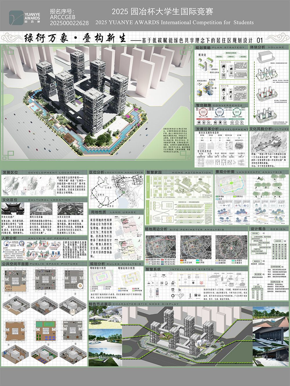 作品简介:该项目以模块生长型社区为核心,采用弹性组团布局实现动态扩展。通过立体绿化系统与生态廊道实现绿色渗透,形成连片生态网络。设置共享资源轴带串联复合功能空间,整合共享办公、多功能场馆等设施。采用垂 ...