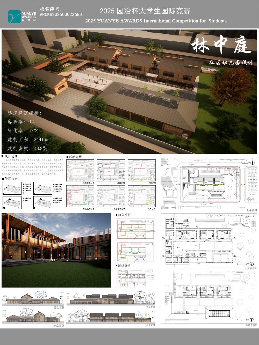 本帖最后由 yfr 于 2025-7-20 23:09 编辑 作品简介:项目拟在某社区建造一所社区幼儿园。项目场地有一颗古银杏树与若干国槐。本设计中,幼儿园主要活动空间由古树确定的轴线统筹,并依靠其他树木设有庭院。幼 ...