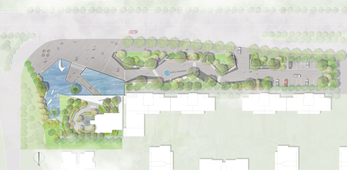 ▲俯拍图 场地思考|Siteconsideration项目基地位于山体切坡与道路之间的洼地,原始场地为城市保护绿地,沿市政道路横向展开,狭长的空间形成压迫的场地感受,临于中南玖宸艺术展览馆,亦是到达展览馆的必经空间,设 ...